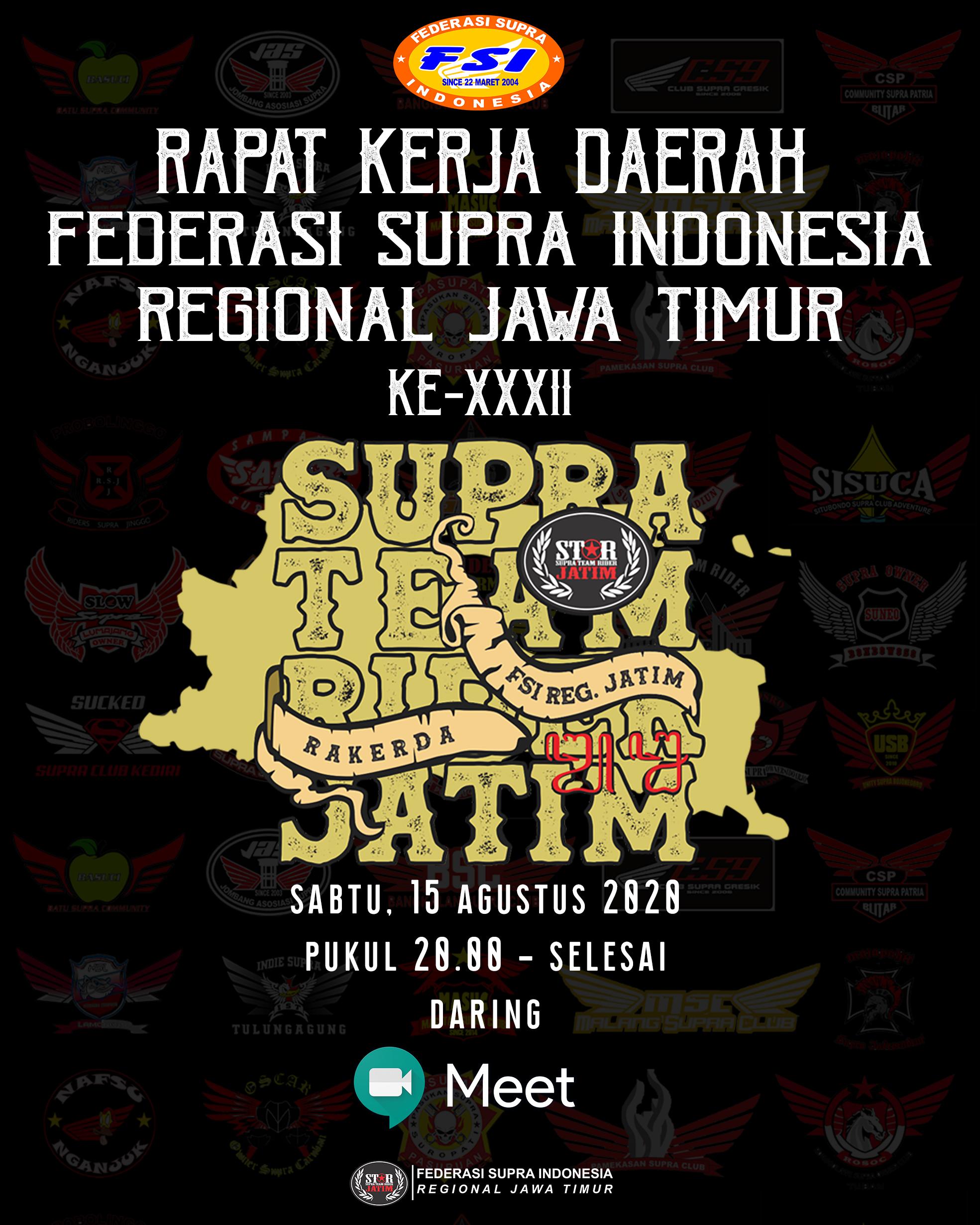 Masa New Normal tak menghalangi Federasi Supra Indonesia (FSI) regional Jawa Timur untuk menjalankan rapat kerja daerah (rakerda). Agenda FSI Regional Jatim ini terus berjalan dengan menyesuaikan kondisi yang ada.