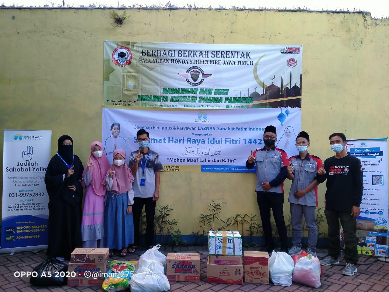 Tahun lalu yang awal pandemi, kegiatan ini ditiadakan. Tahun ini acara bertitel Berbagi Berkah Serentak Paguyuban Honda Streetfire Jawa Timur dilaksankan Minggu (2/5).