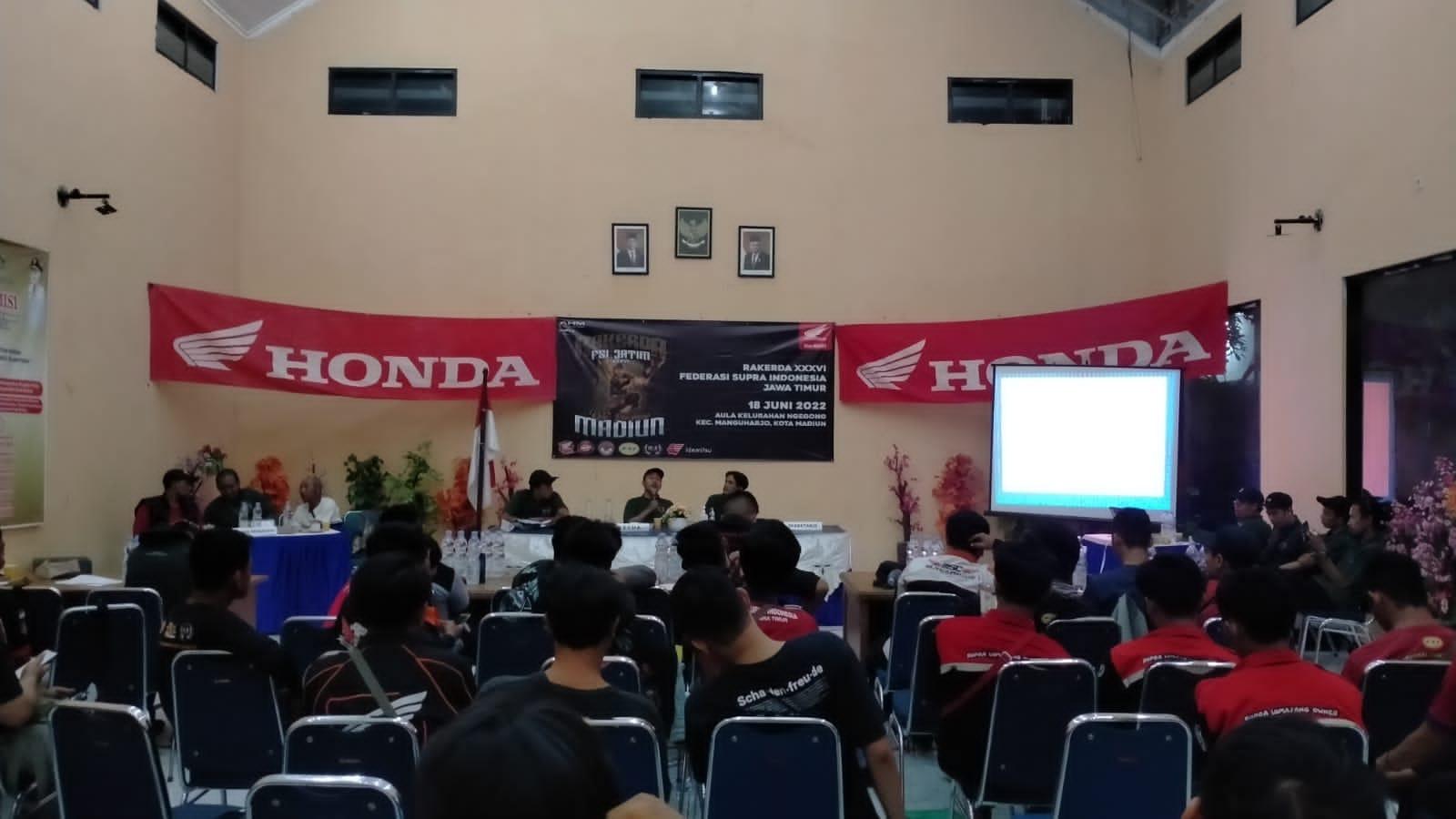Perwakilan klub dan komunitas Honda Supra di Jatim yang tergabung dalam Federasi Supra Indonesia (FSI) regional Jawa Timur berkumpul di Madiun (19/6). Pertemuan ini untuk mengikuti event Rapat Kerja Daerh (Rakerda) ke 36 yang dihelat bertempat di aula kelurahan Ngegong kecamatan Manguharjo kota Madiun.