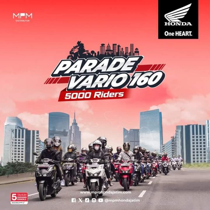 Gelaran akbar yang melibatkan ribuan pengendara Vario dihajat MPM Honda Jatim distributor motor Honda di Jatim dan NTT. Acara bernama Parade Vario 160 5000 Riders.