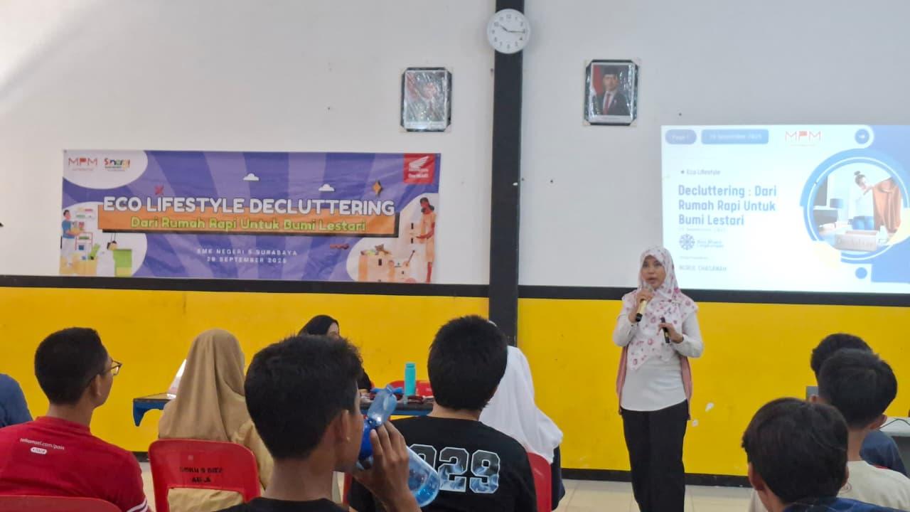 Kegiatan ini turut melibatkan komunitas peduli lingkungan Surabaya, narasumber dari Yayasan Bina Bhakti Lingkungan, serta influencer @jesslinmeii yang membagikan pengalaman dan tips praktis dalam menerapkan decluttering sehari-hari.