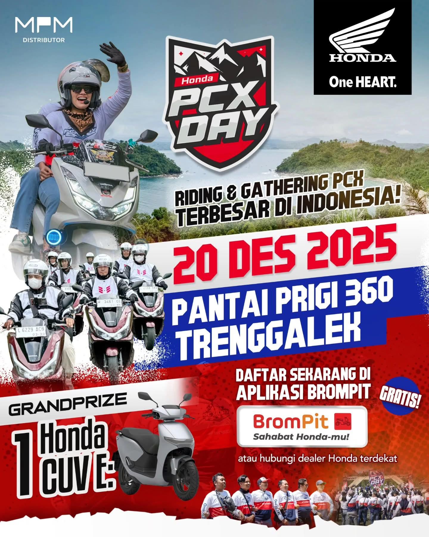 Ajang silaturahmi komunitas, konsumen, sekaligus bentuk apresiasi MPM Honda Jatim kepada pengguna setia PCX160 di Jawa Timur akan dilaksanakan. Event bertitel Honda PCX Day dihelat pada Sabtu 20 Desember 2025.