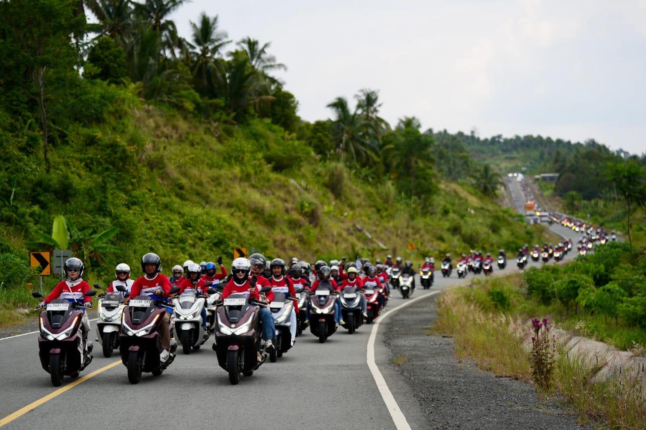 Ratusan pengendara Honda PCX tampak antusias menikmati perjalanan menyusuri jalur pesisir selatan, sebelum akhirnya berkumpul dan merayakan kebersamaan di lokasi acara.