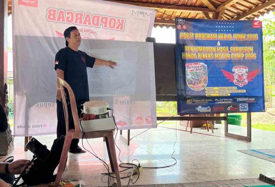 Paguyuban Motor Honda Kediri (PMHK) gerak cepat usai ikuti Honda Bikers Motour Camp 2026 digelar MPM Honda Jatim di Rainbow Garden Poetoek Soeko Trawas Mojokerto pada Sabtu-Minggu (31 Januari-1 Februari 2026). PMHK lakukan sosialisasi hasil Honda Bikers Motour Camp 2026 ke klub dan komunitas anggota.