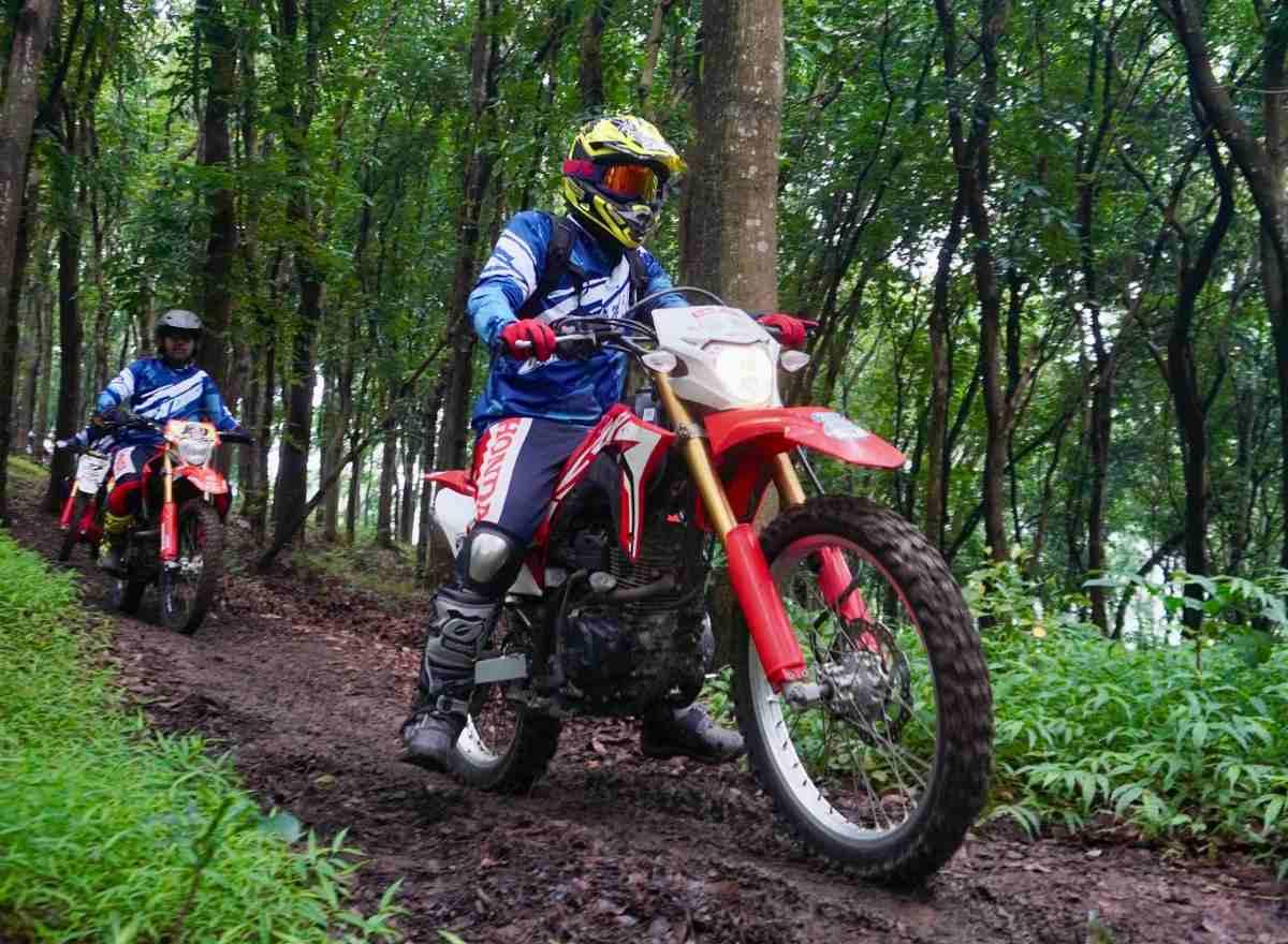 Honda CRF150L tampil sebagai motor andalan sepanjang kegiatan. Dengan tagline “Unlimit Your World”, model ini menawarkan performa dan teknologi yang dirancang untuk menghadapi berbagai kondisi jalur. Suspensi Showa inverted 37mm, Pro-Link rear suspension, wavy disc brake berdiameter besar, rangka yang tangguh, serta panel meter digital compact memberikan stabilitas, kontrol, dan kenyamanan optimal saat melewati jalur berbatu, turunan ekstrem, hingga tanjakan tajam. Kombinasi fitur dan karakter mesin responsif membuat Honda CRF150L menjadi pilihan tepat bagi pecinta adventure dan off-road.